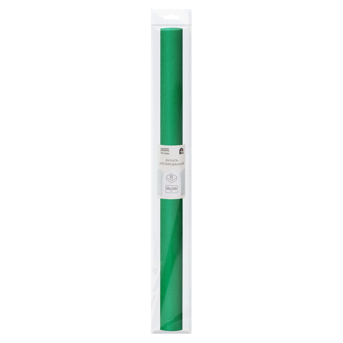 Бумага крепированная ТРИ СОВЫ, 50*250см, 32г/м2, зеленая, в рулоне, пакет с европодвесом