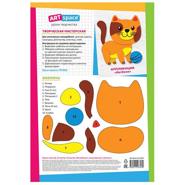 - Для аппликаций: цветной картон А4 10 листов для ярких деталей.