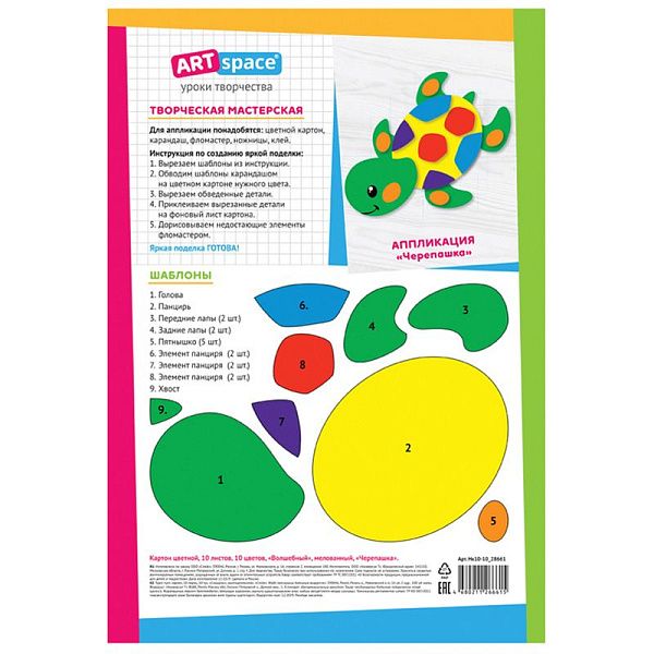 - Для аппликаций: цветной картон А4 10 листов для ярких деталей.