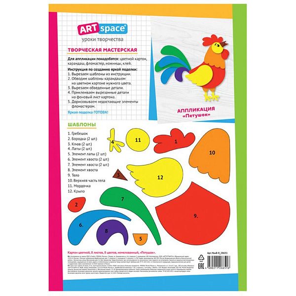 • Для аппликаций: цветной картон А4 10 листов для ярких деталей.