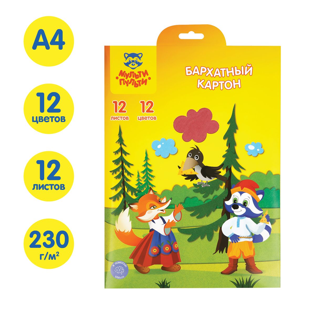 Картон бархатный А4, Мульти-Пульти, 12л., 12цв., "Енот в волшебном мире"