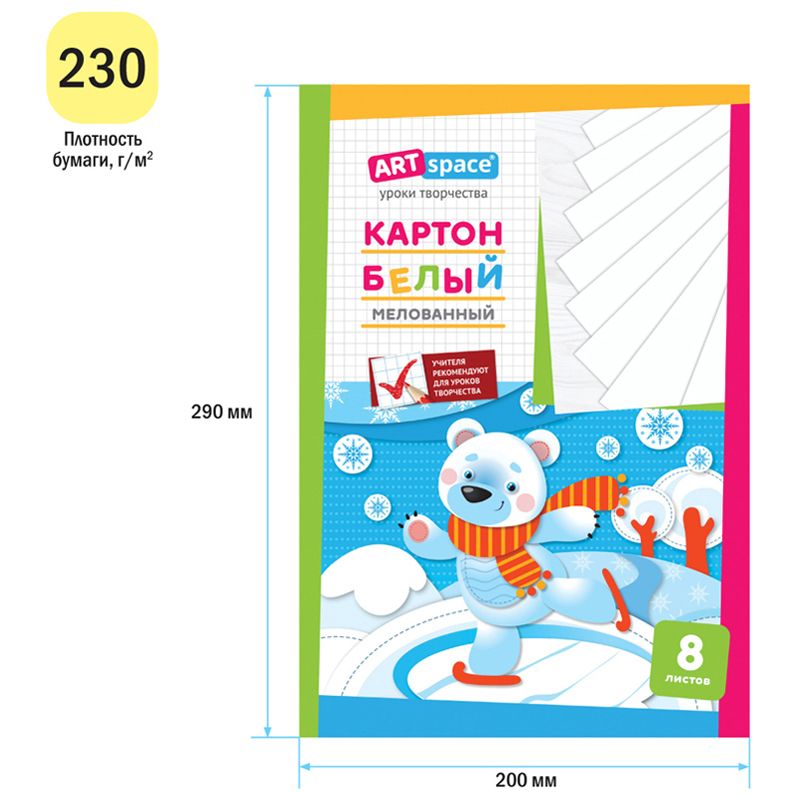Картон белый А4, ArtSpace, 8л., мелованный в папке