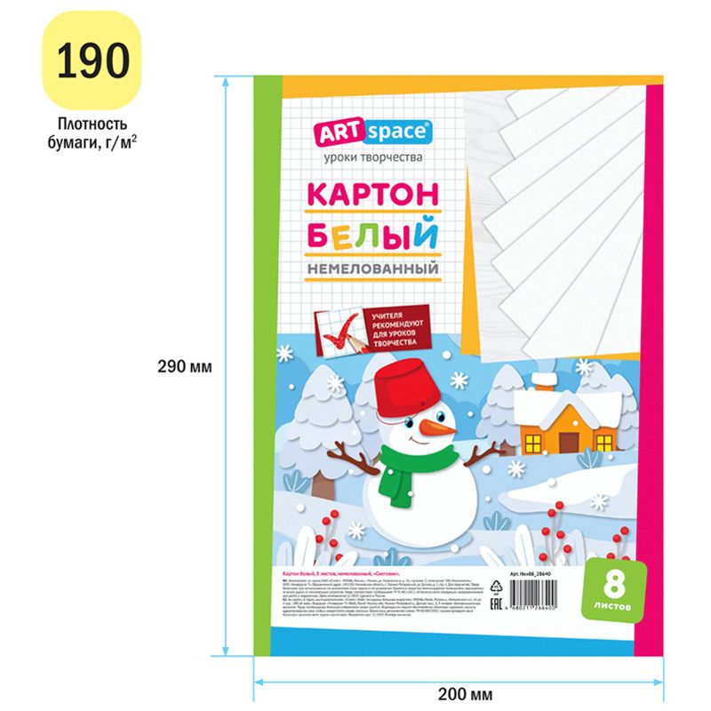 Картон белый А4, ArtSpace, 8л., немелованный, в пакете, "Снеговик"