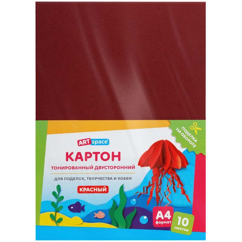 Картон цветной А4, ArtSpace, 10л., тонированный, красный, 180г/м2