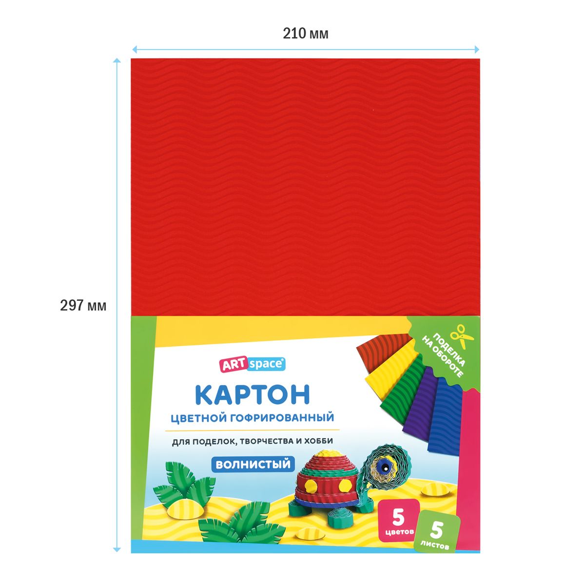 Картон цветной А4, ArtSpace, 5л., 5цв., гофрированный, волнистый, в пакете