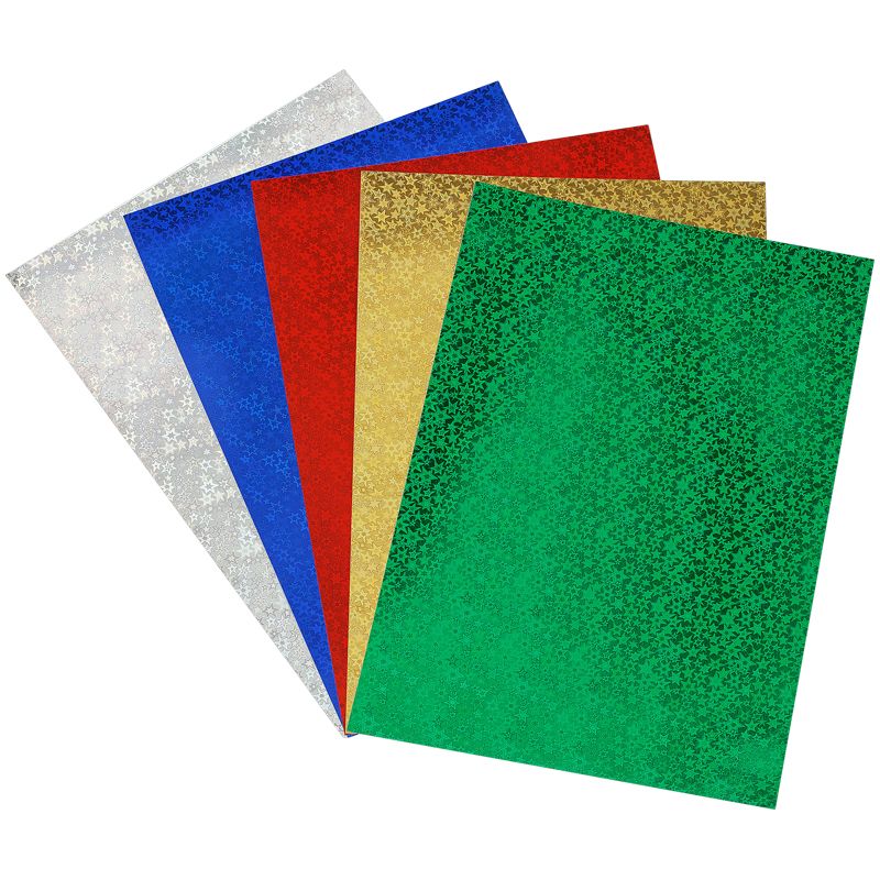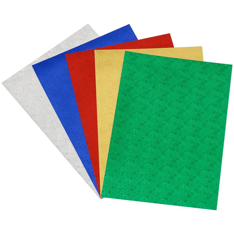 Картон цветной А4, ArtSpace, 5л., 5цв., металлизированный голографический, узор "Звездочки", в папке