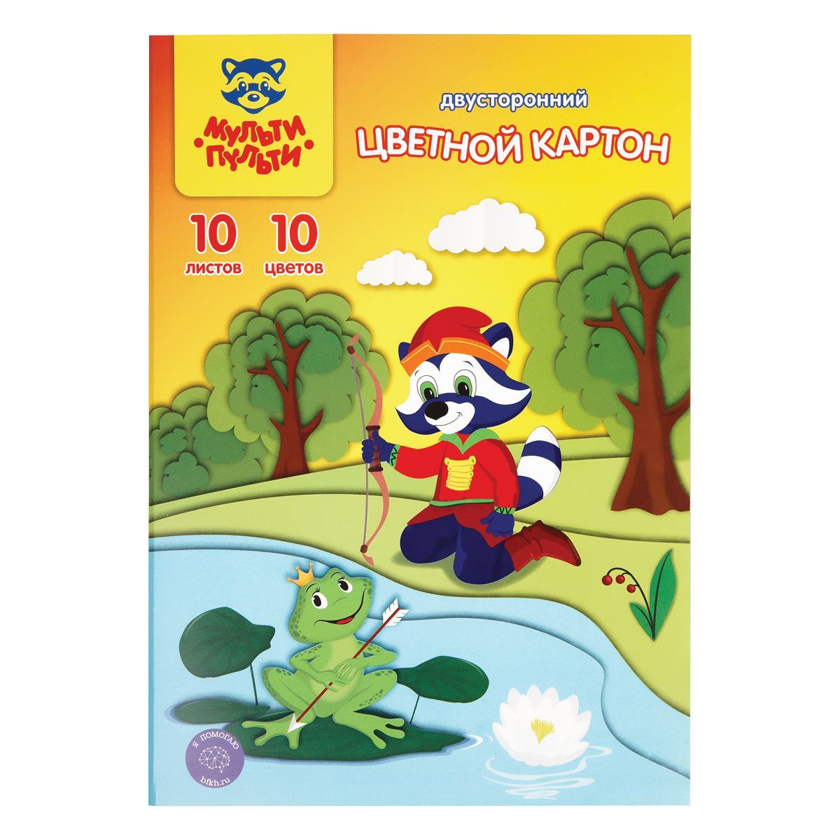 Картон цветной А4 двустор., Мульти-Пульти, 10л., 10цв., мелованный, в папке, "Енот в волшебном мире"