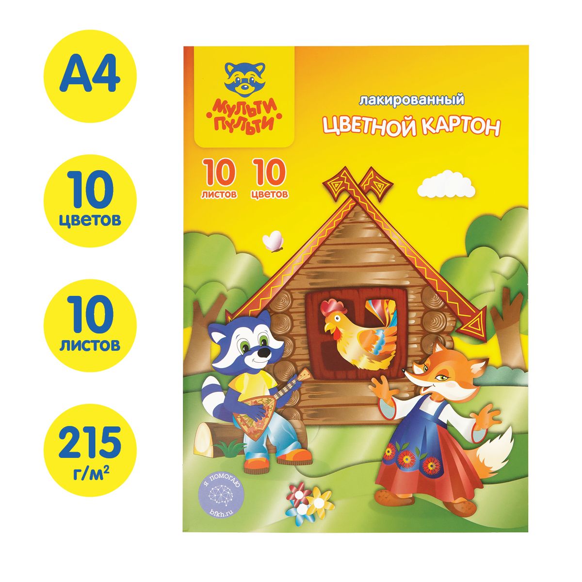 Картон цветной А4, Мульти-Пульти, 10л., 10цв., лакированный, в папке, "Приключения Енота"