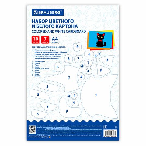 - Набор цветного картона А4: 10–20 листов, включая зеленый и красный, для аппликаций.