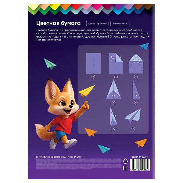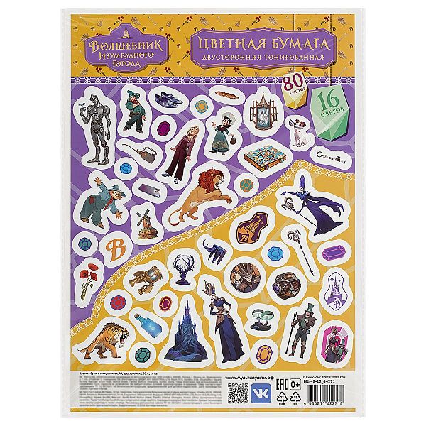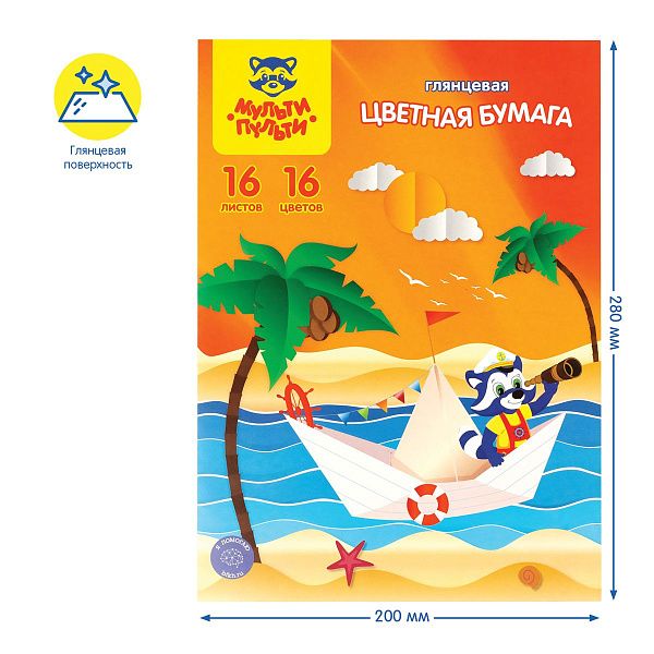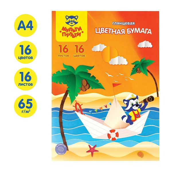 - Наборы цветной бумаги: 16 листов, 8 цветов, для школьных проектов.