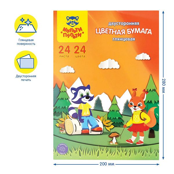 - Мелованная цветная бумага А4: двусторонняя, яркая, для выразительных работ.