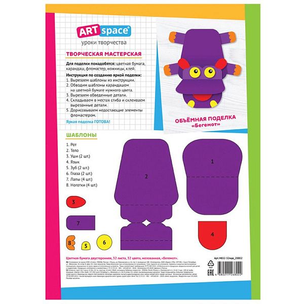 - Для аппликаций: цветная бумага А4 офсетная, 16 листов, 8 цветов.