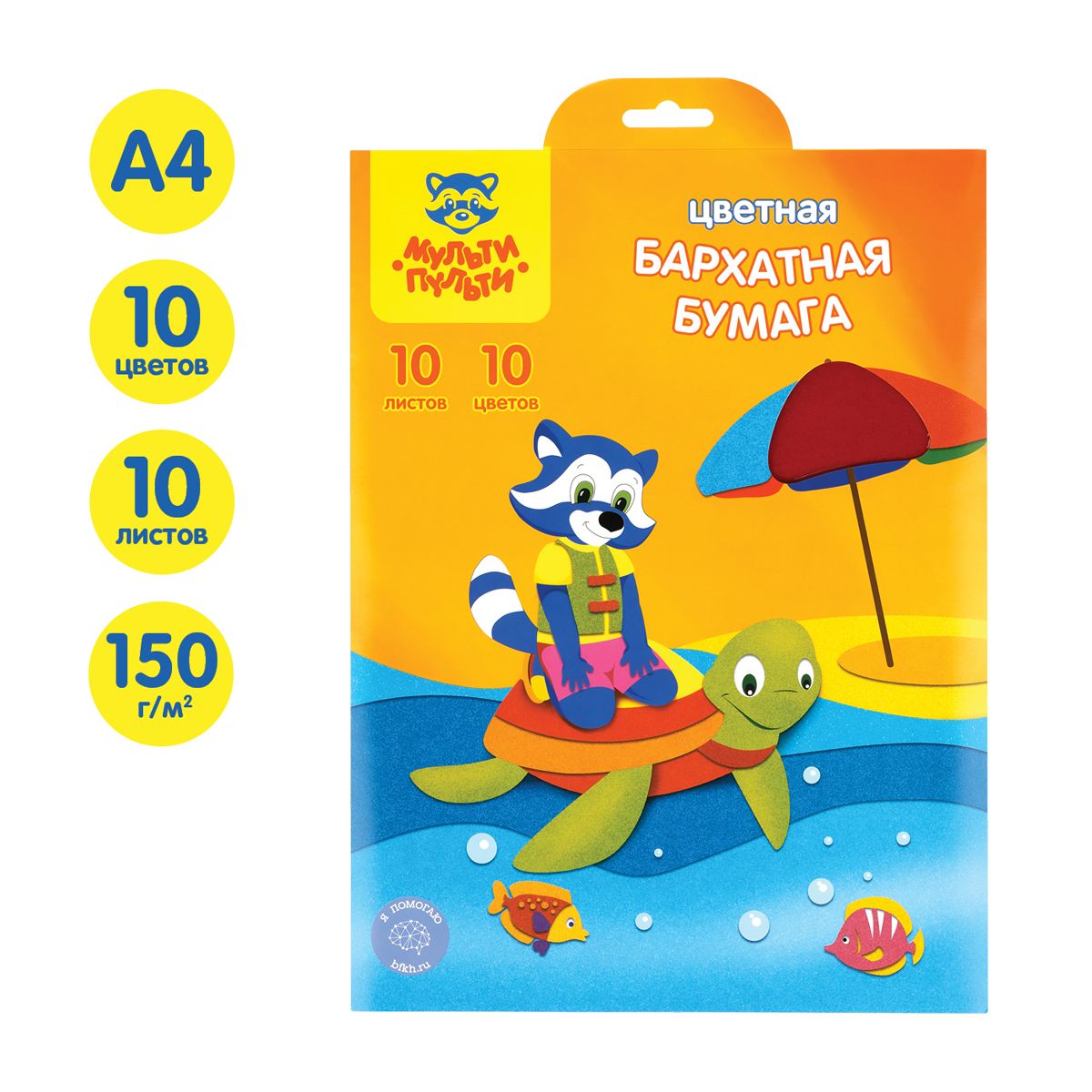 Бархатная бумага А4, Мульти-Пульти "Приключения Енота", 10л., 10цв., в папке