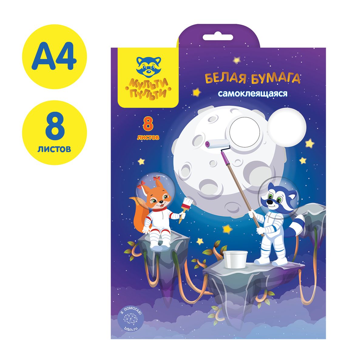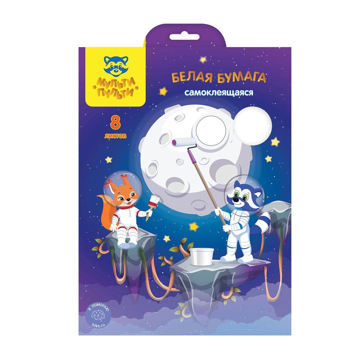 Белая бумага самоклеящаяся А4, Мульти-Пульти, 8л., в папке, "Енот в космосе"