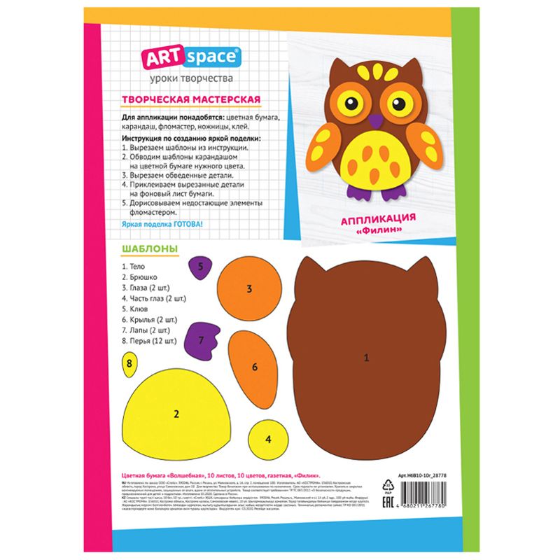 Цветная бумага газетная, А4, ArtSpace, 10л., 10цв., "Волшебная. Филин"