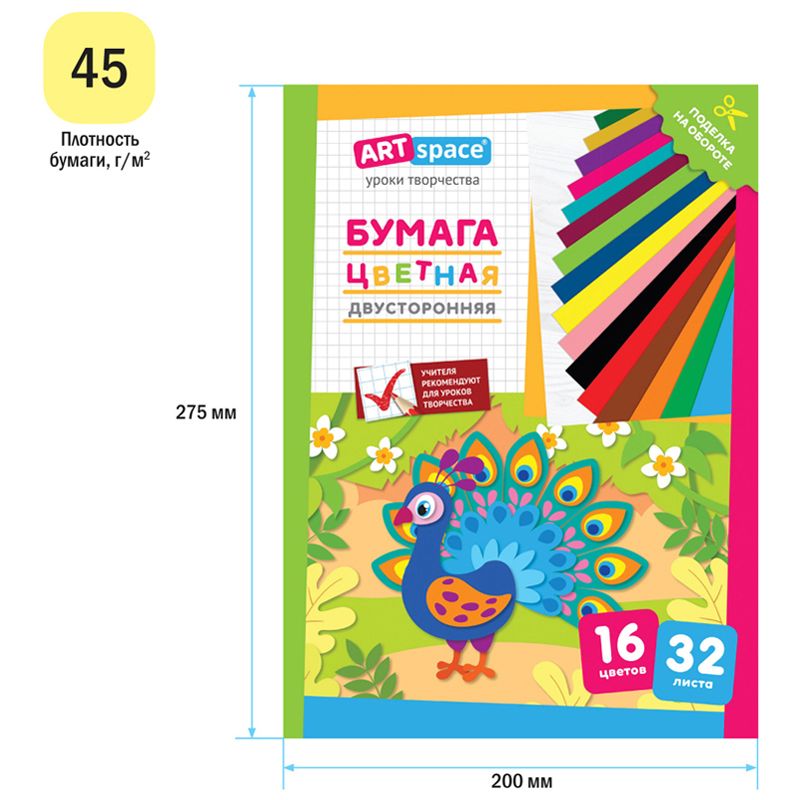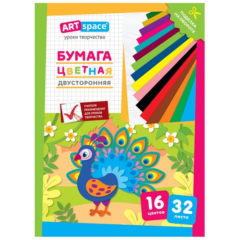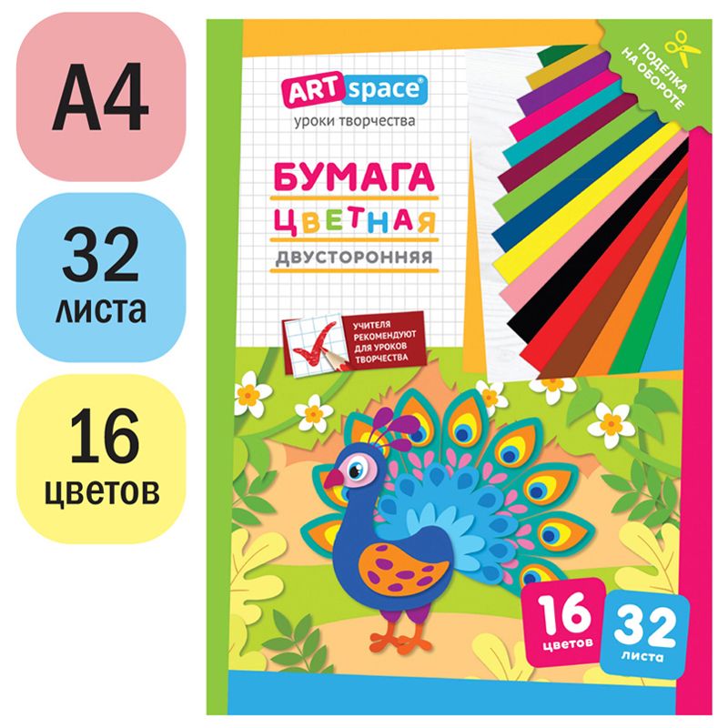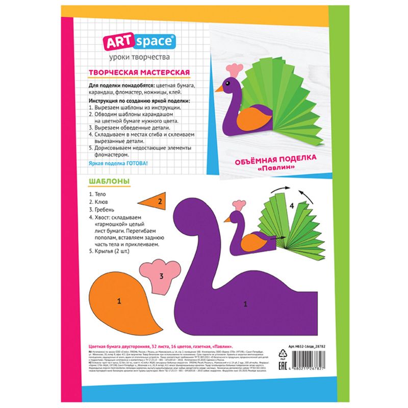 Цветная бумага газетная А4, ArtSpace, двустор., 32л., 16цв., "Павлин"