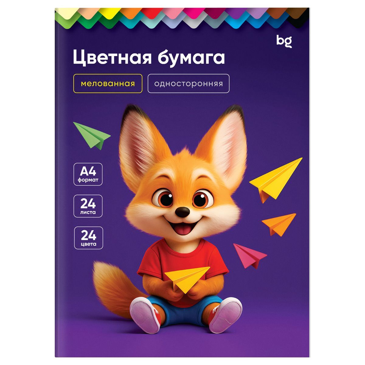 Цветная бумага мелованная A4, BG, одностор., 24 л., 24 цв., на скобе