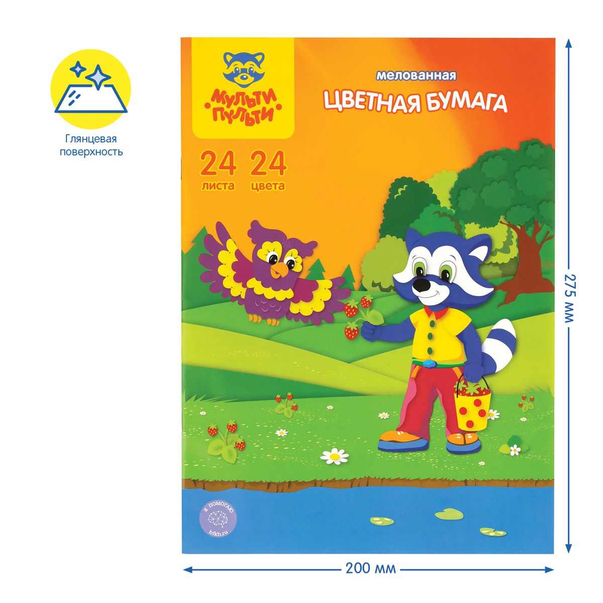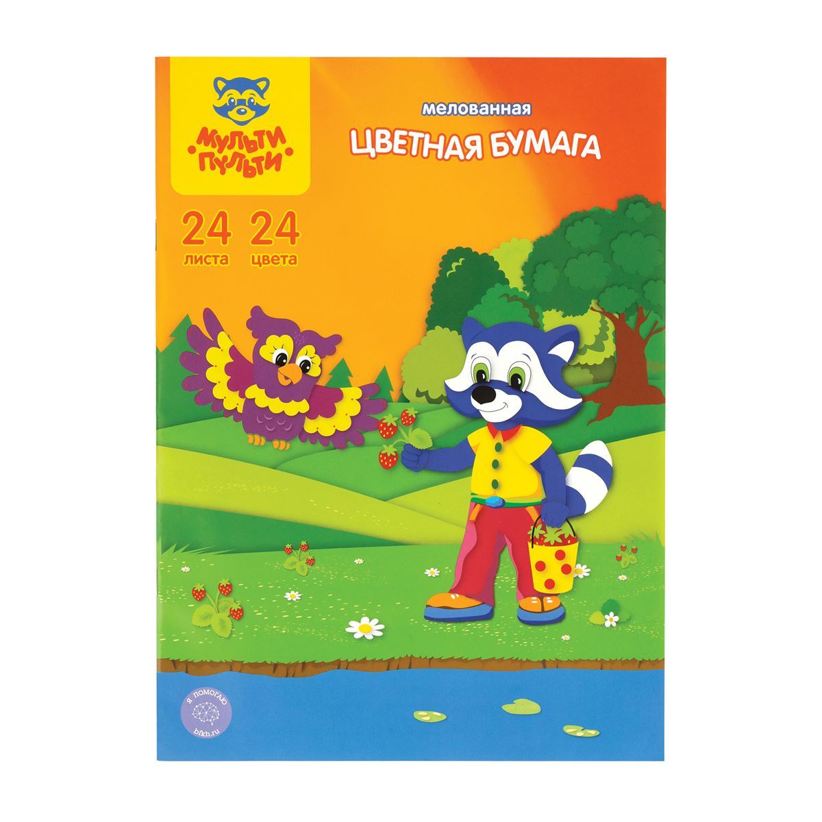 Цветная бумага мелованная А4, Мульти-Пульти, 24л., 24цв., на скобе, "Приключения Енота"