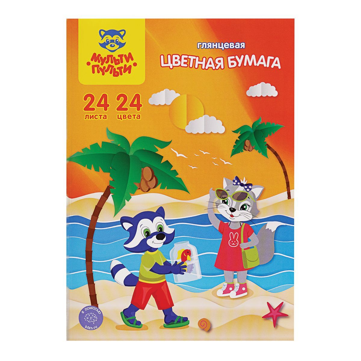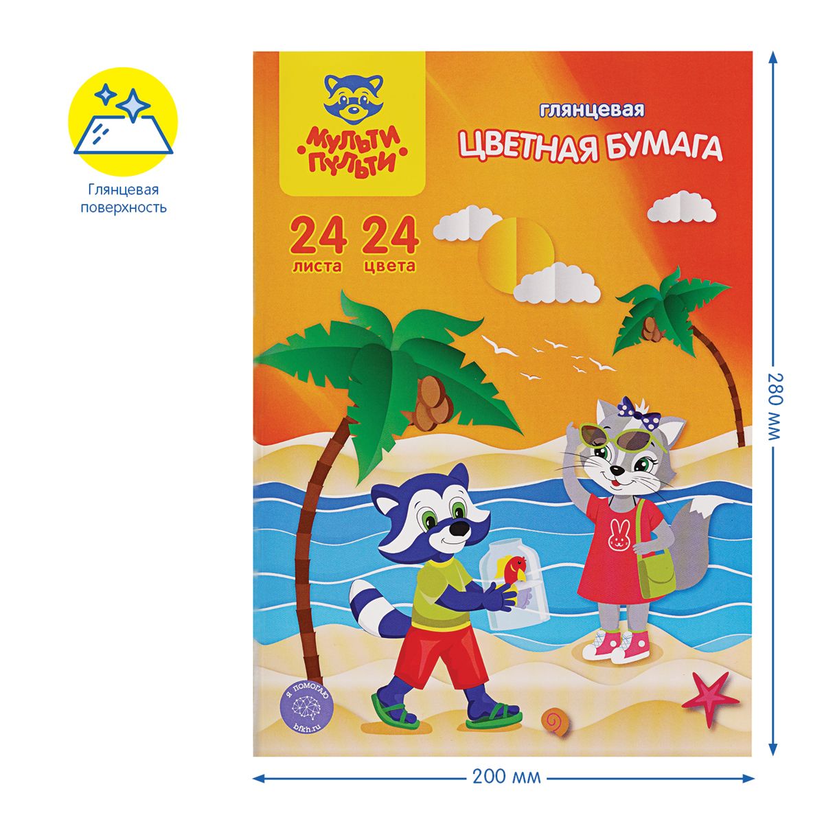 Подробности и характеристики: Цветная бумага Multi-Pulti имеет формат А4 и мелованную поверхность. В пачке 24 листа, представленных в 24 цветах. Бумага упакована в папку с изображением персонажа Эно. Артикул и штрих-код указаны на упаковке.