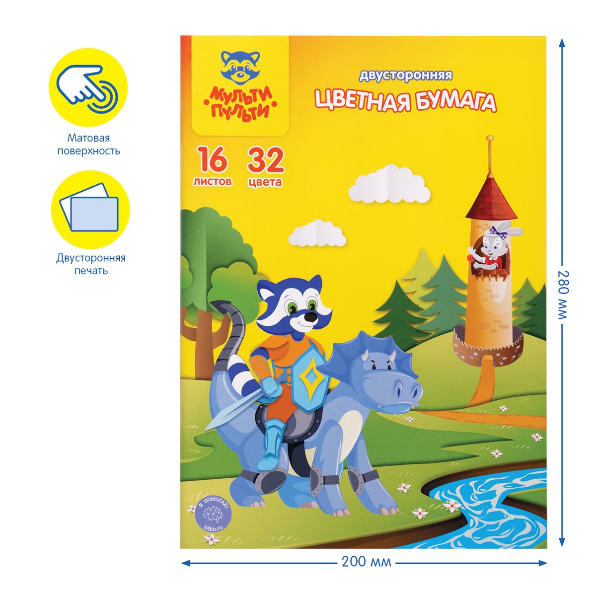 Цветная бумага офсетная А4, Мульти-Пульти, двустор., 16л., 32цв., на скобе, "Енот в волшебном мире"