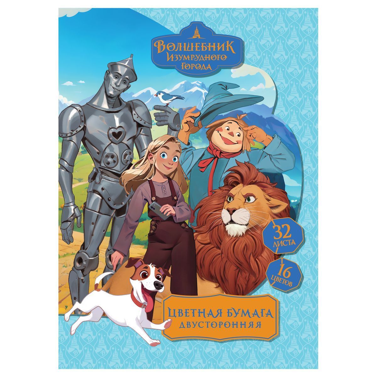 Цветная бумага офсетная A4, Мульти-Пульти, двустор., 32л., 16цв., на скобе, "Волшебник изумрудного города"