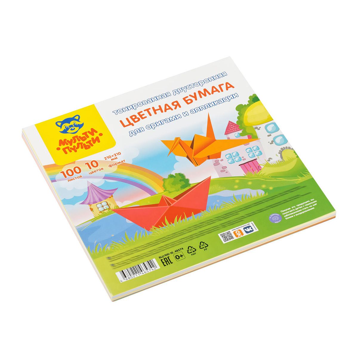 Цветная бумага тонированная 210*210мм, Мульти-Пульти, 100л., 10цв., в пакете, "Енот в России"