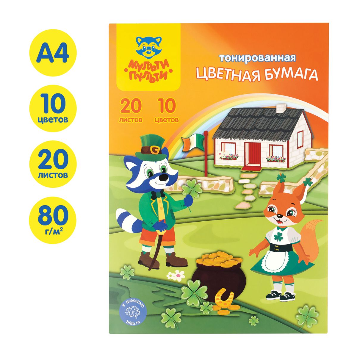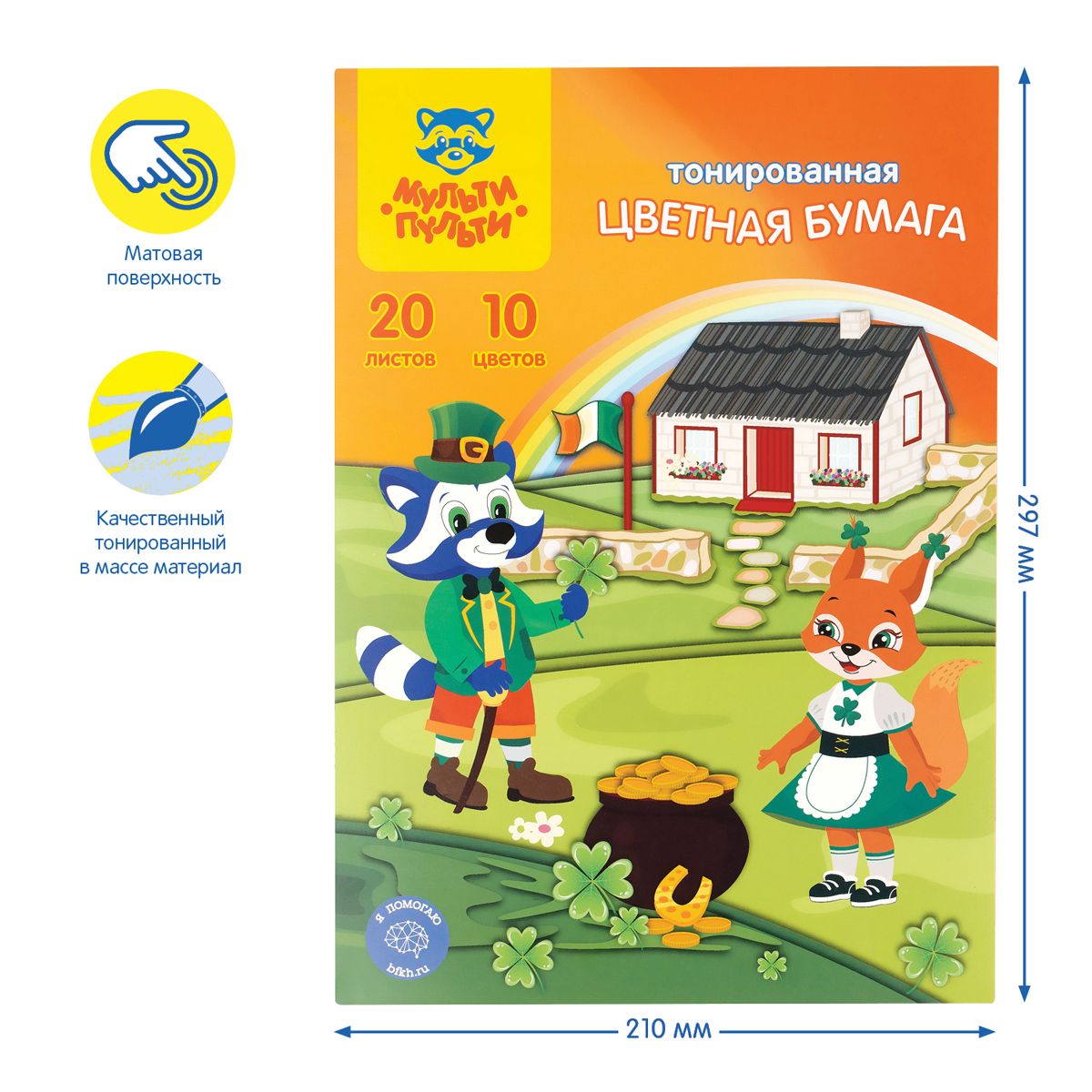 Цветная бумага тонированная А4, Мульти-Пульти, 20л., 10цв., в папке, "Приключения Енота"