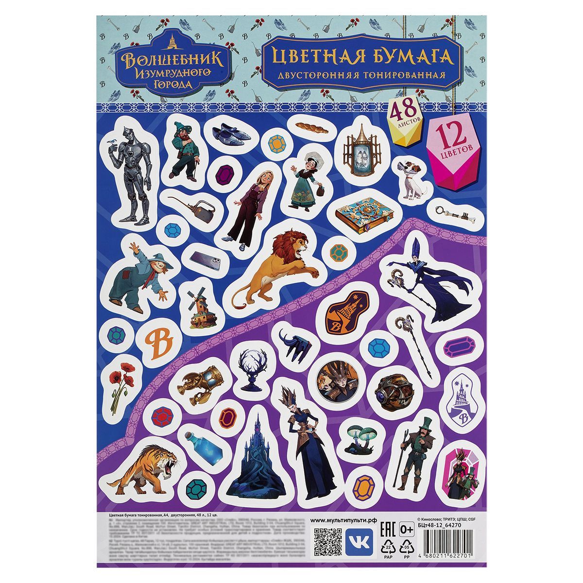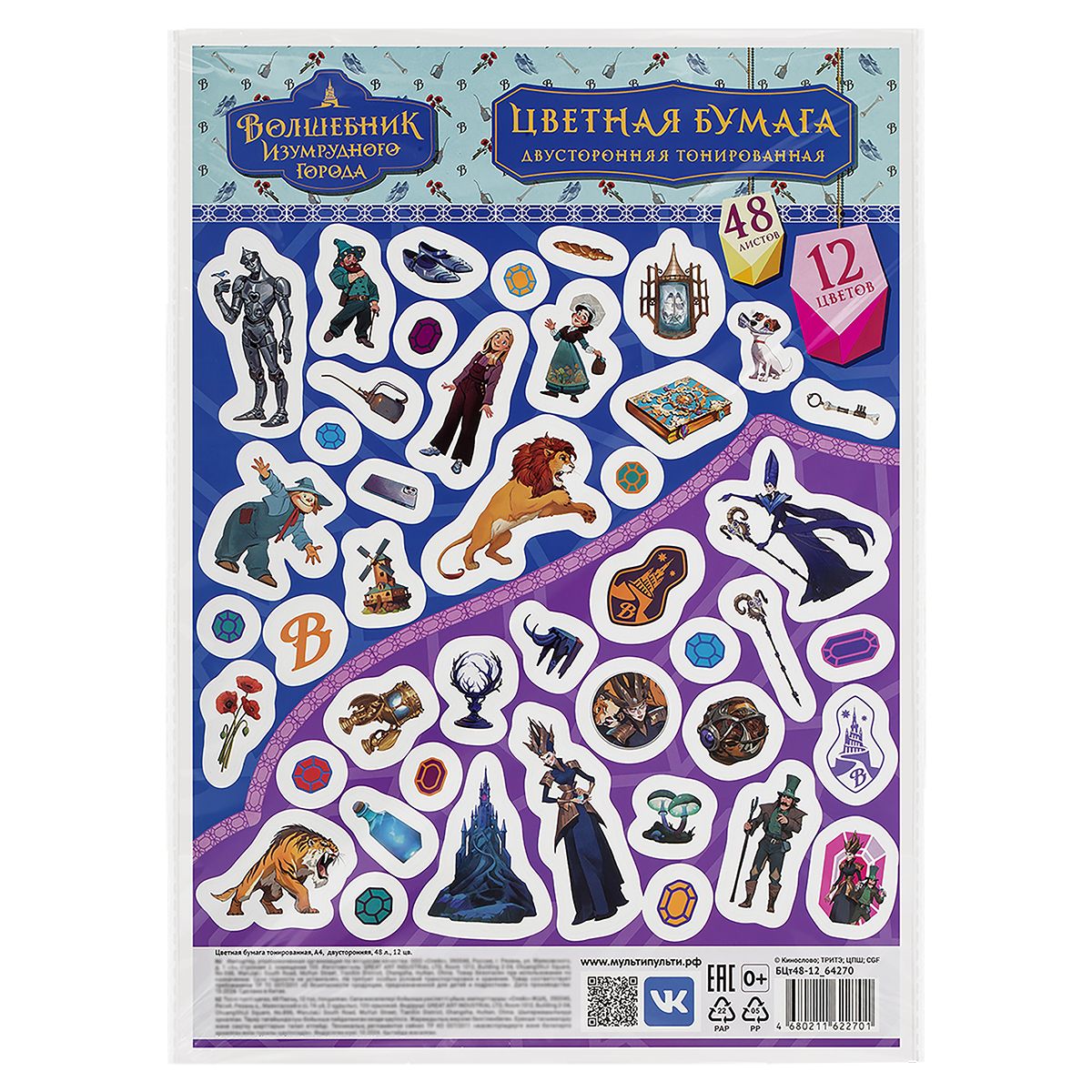 Цветная бумага тонированная А4, Мульти-Пульти, 48л., 12цв., в пакете, "Волшебник изумрудного города"