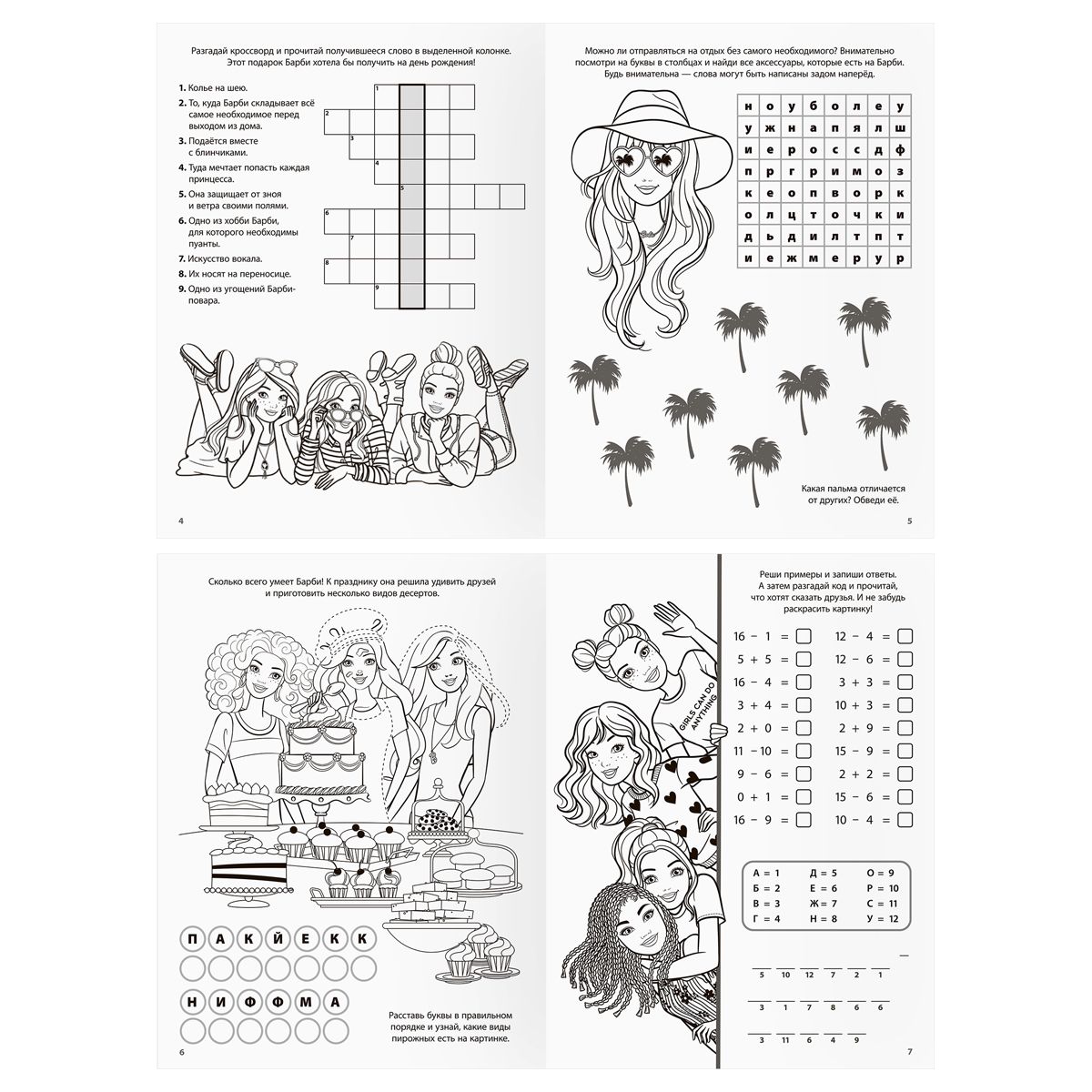 Книжка-задание А4 ТРИ СОВЫ "Зарядка для ума. Барби", 12стр.