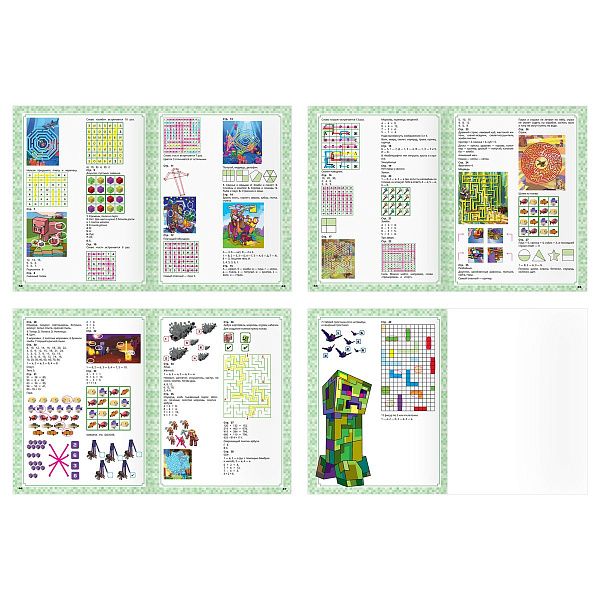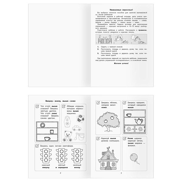 - "Первые шаги в математике" (3–5 лет) помогает освоить счёт с помощью наклеек.
