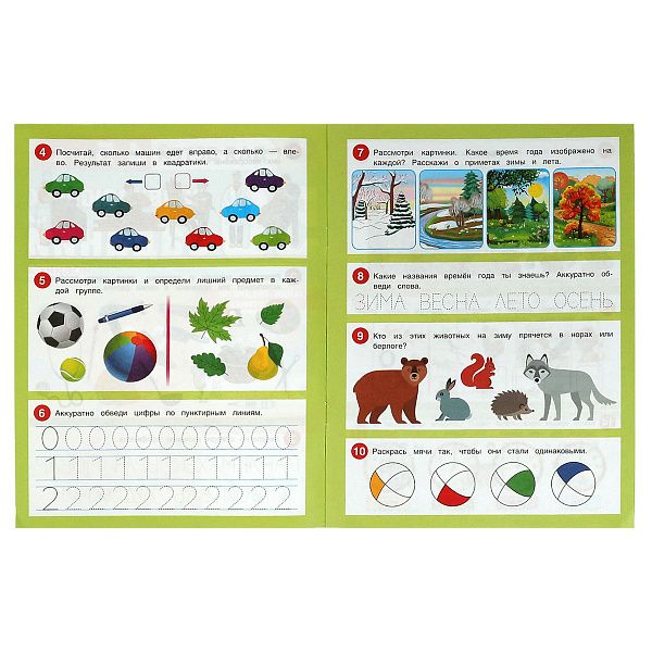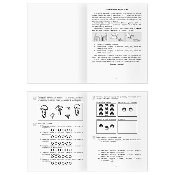 | Умка | Первые шаги в математике | 3–5 | А5, 3–5 лет, наклейки | Задачи с животными |
