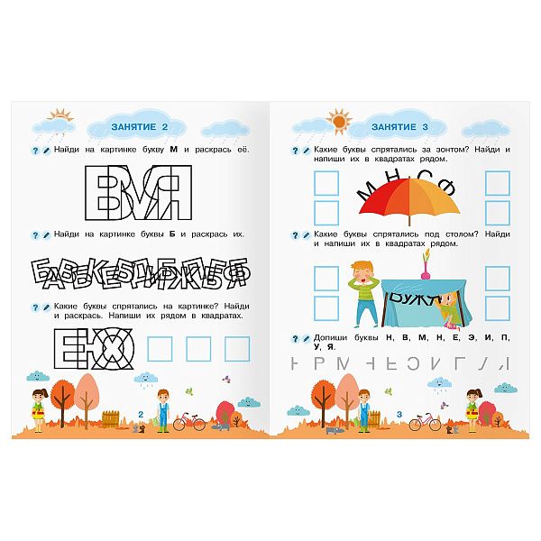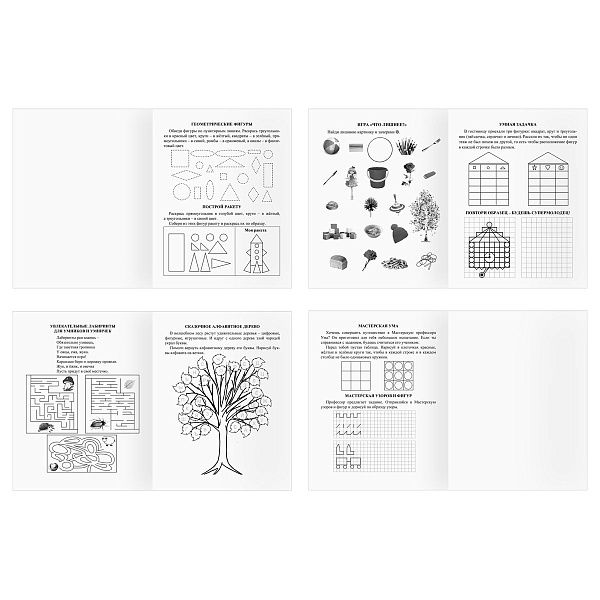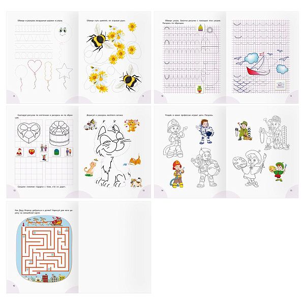 | Умка | Пиши и рисуй | 4–6 | А5, наклейки и рисунки | Творческие задания |