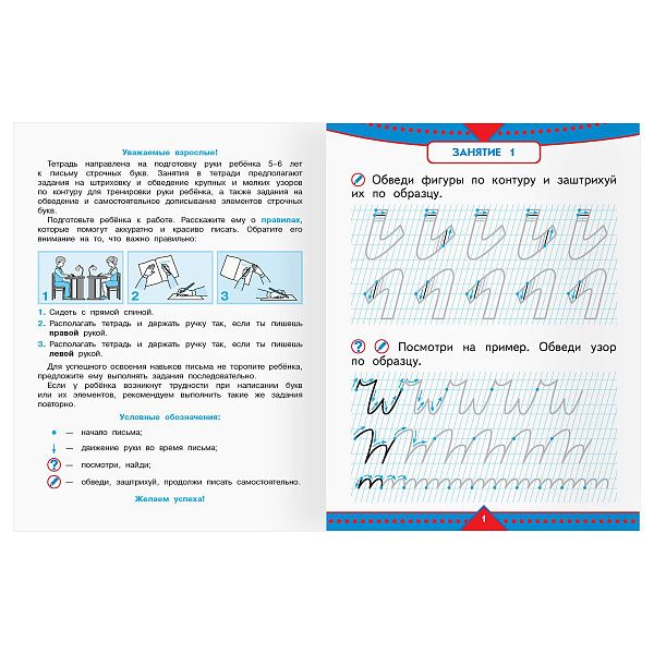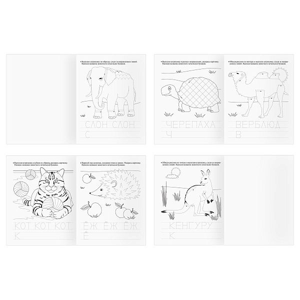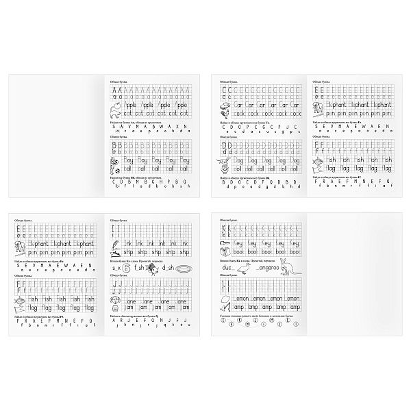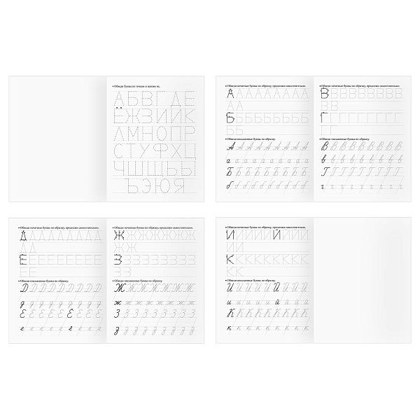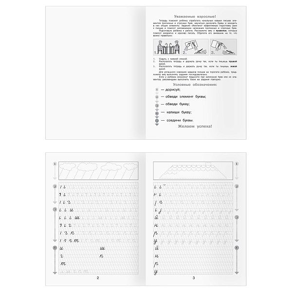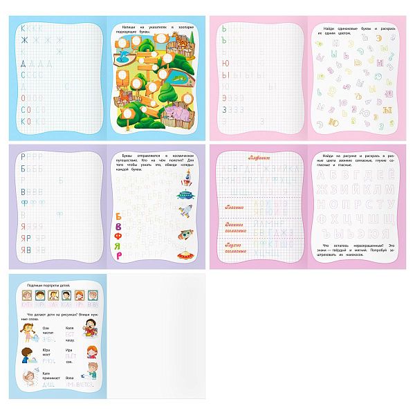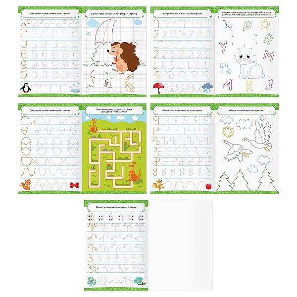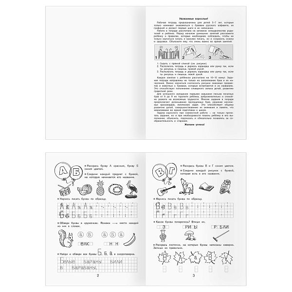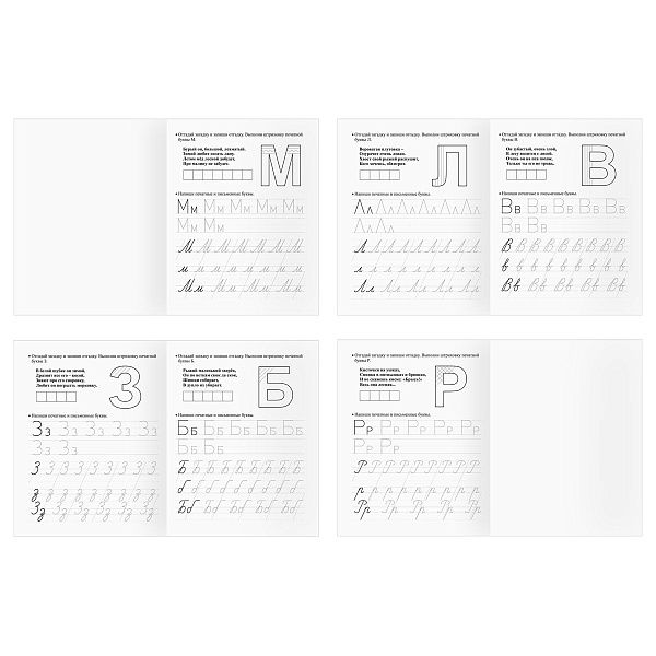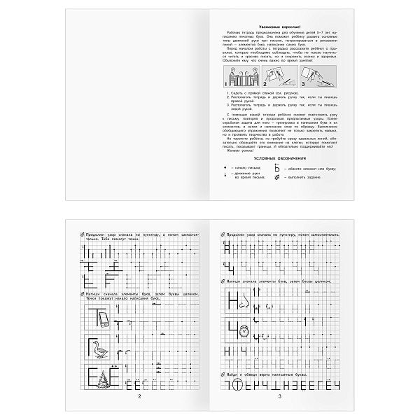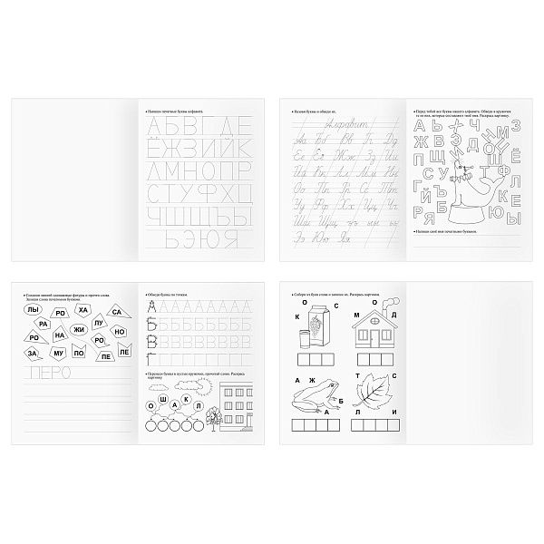 | Росмэн | Прописи буквы | 5–7 | А5, косая линовка | Упражнения на моторику |