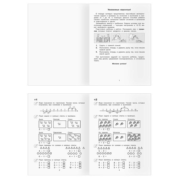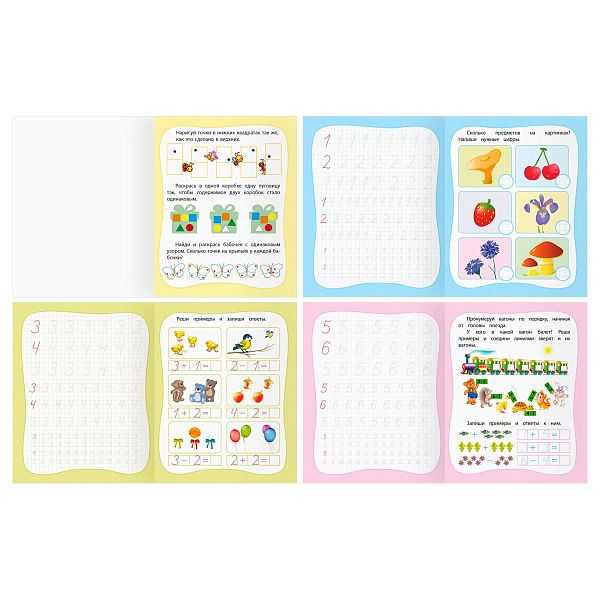 | Умка | Первые шаги в математике | 3–5 | А5, 3–5 лет, наклейки | Задачи с животными |