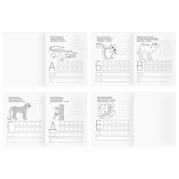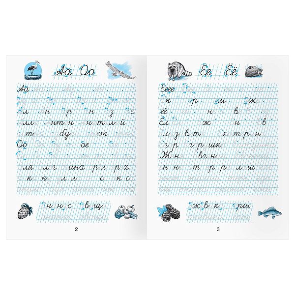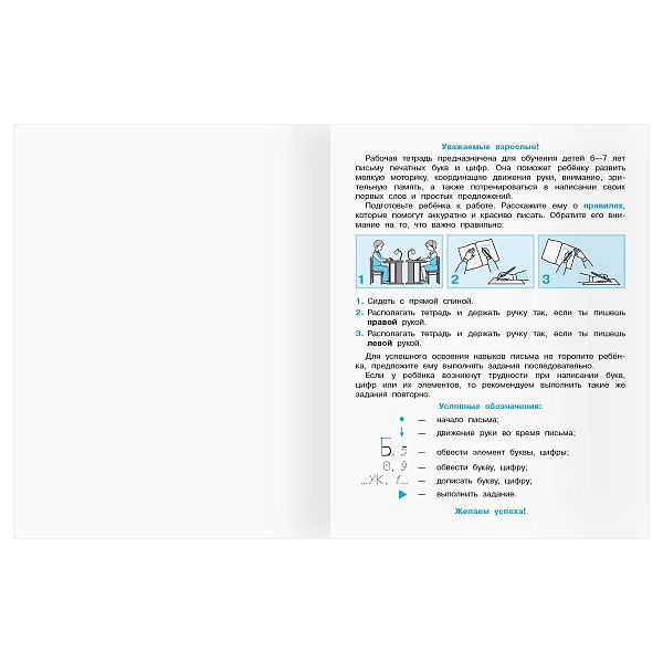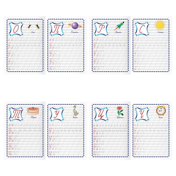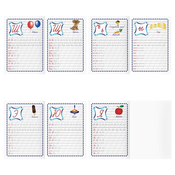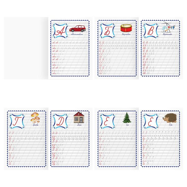 | Росмэн | Прописи буквы | 5–7 | А5, косая линовка | Упражнения на моторику |