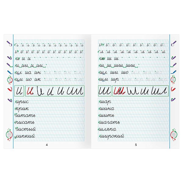 - Качество бумаги (например, в "Учись писать красиво") предотвращает разрывы.