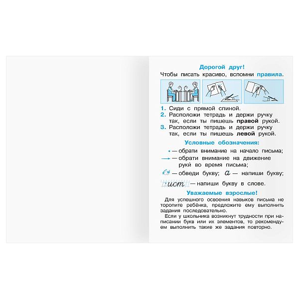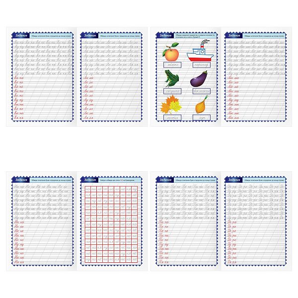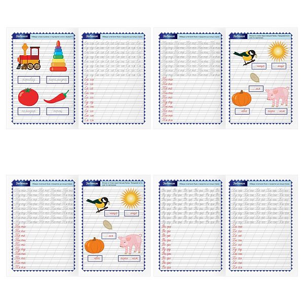 | Росмэн | Прописи буквы | 5–7 | А5, косая линовка | Упражнения на моторику |