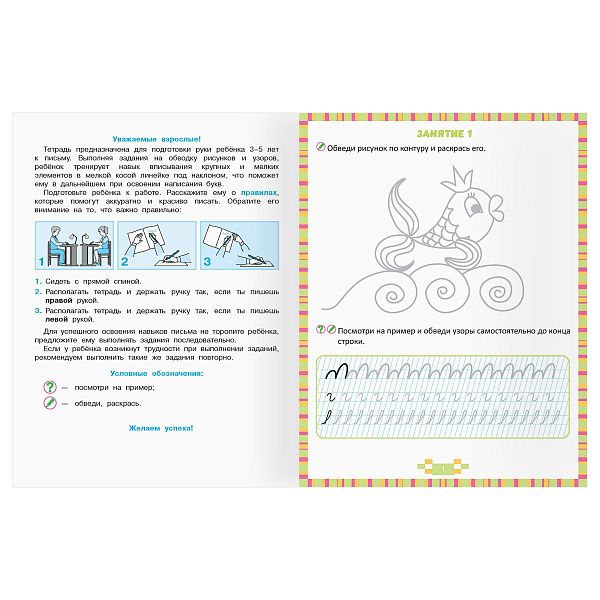- Для ежедневной практики — тетради для тренировки почерка (5–7 лет).