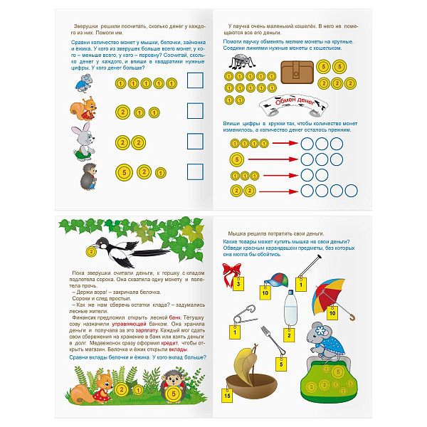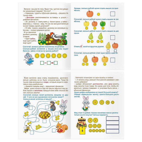 | Умка | Первые шаги в математике | 3–5 | А5, 3–5 лет, наклейки | Задачи с животными |
