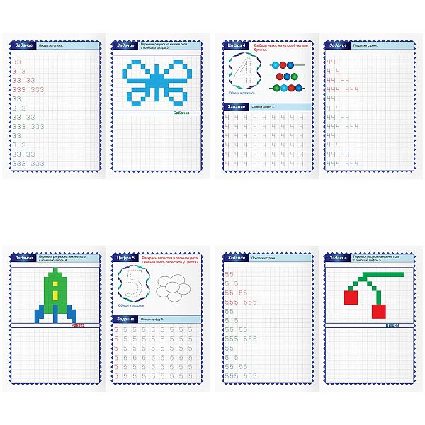 - "Рабочая тетрадь прописи для дошкольников" (6 лет) включает стикеры, которые награждают за успехи.