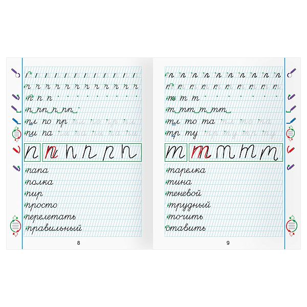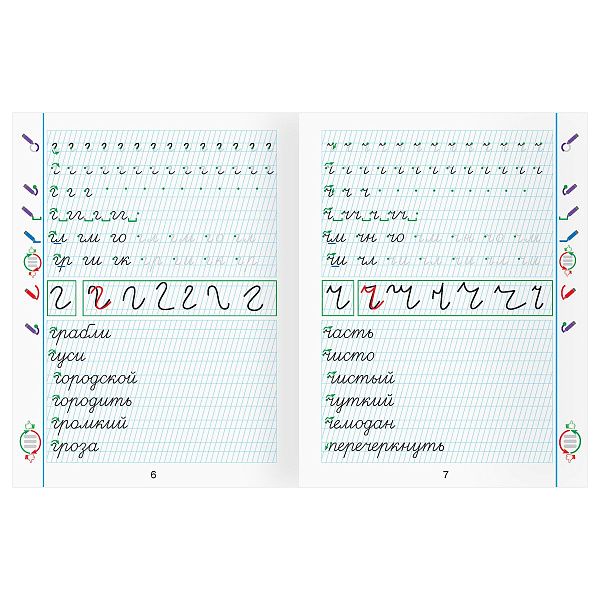 - "Рабочая тетрадь прописи для дошкольников" (6 лет) включает стикеры, которые награждают за успехи.