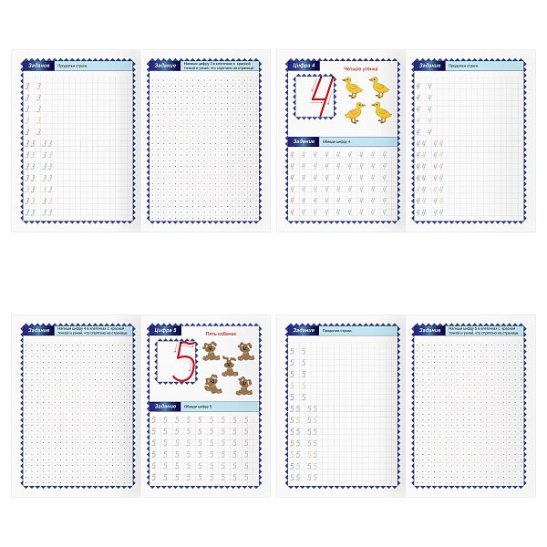 | Росмэн | Прописи буквы | 5–7 | А5, косая линовка | Упражнения на моторику |