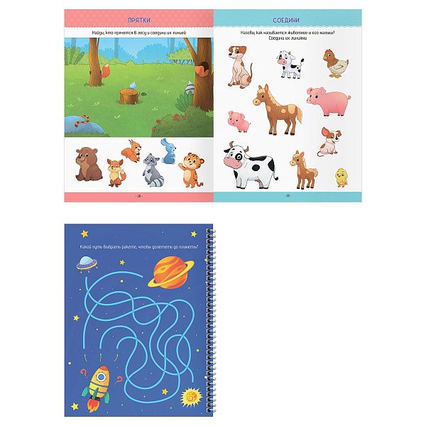 - Детские книжки с заданиями, такие как "Пиши и рисуй" (4–6 лет), развивают креативность и моторику. Наклейки с животными или буквами делают процесс увлекательным.
