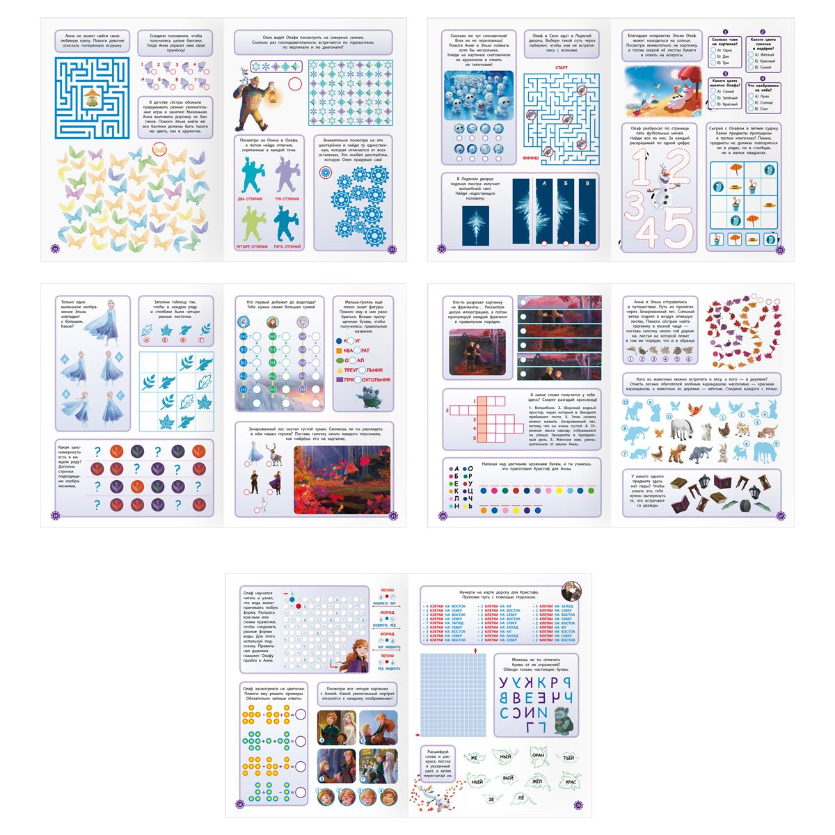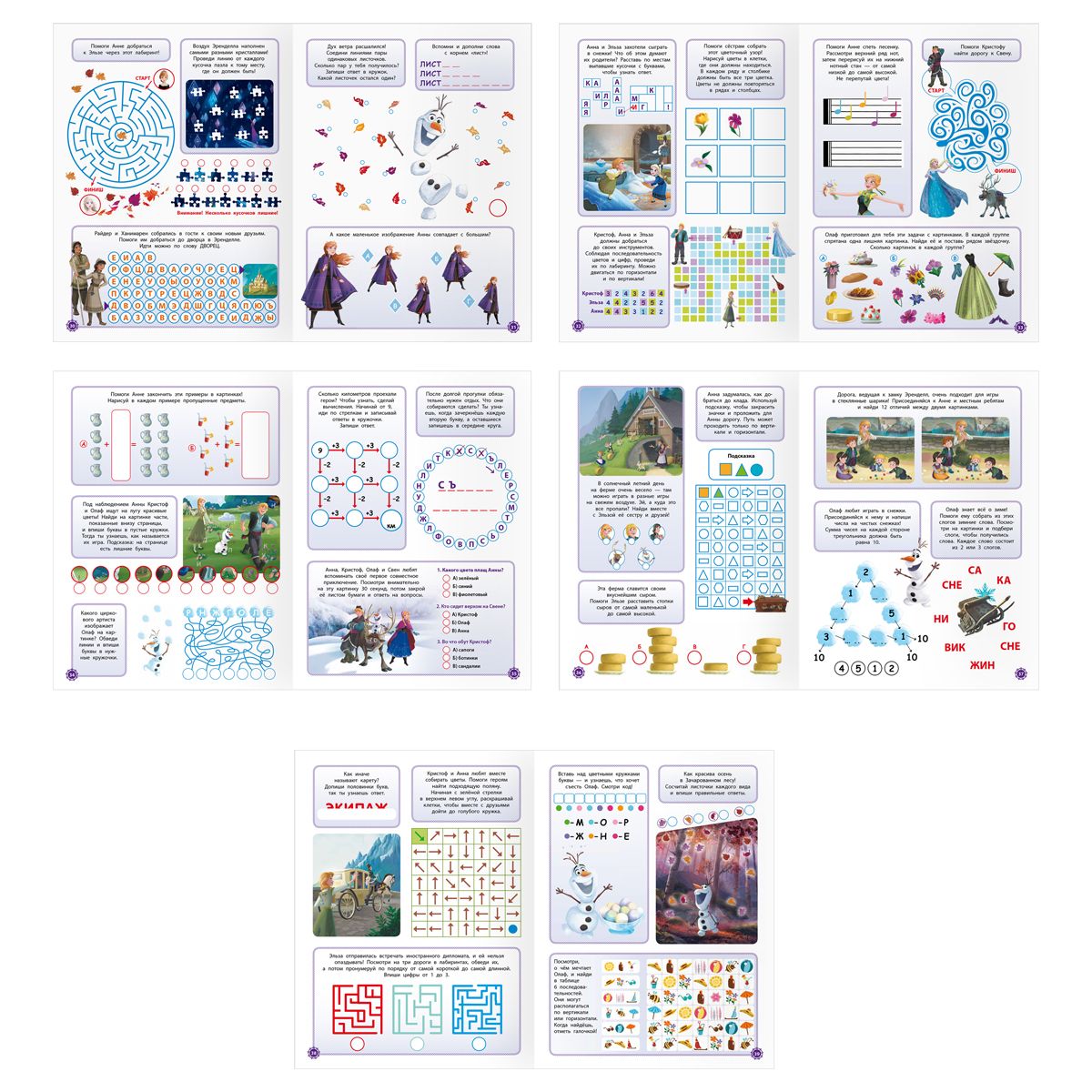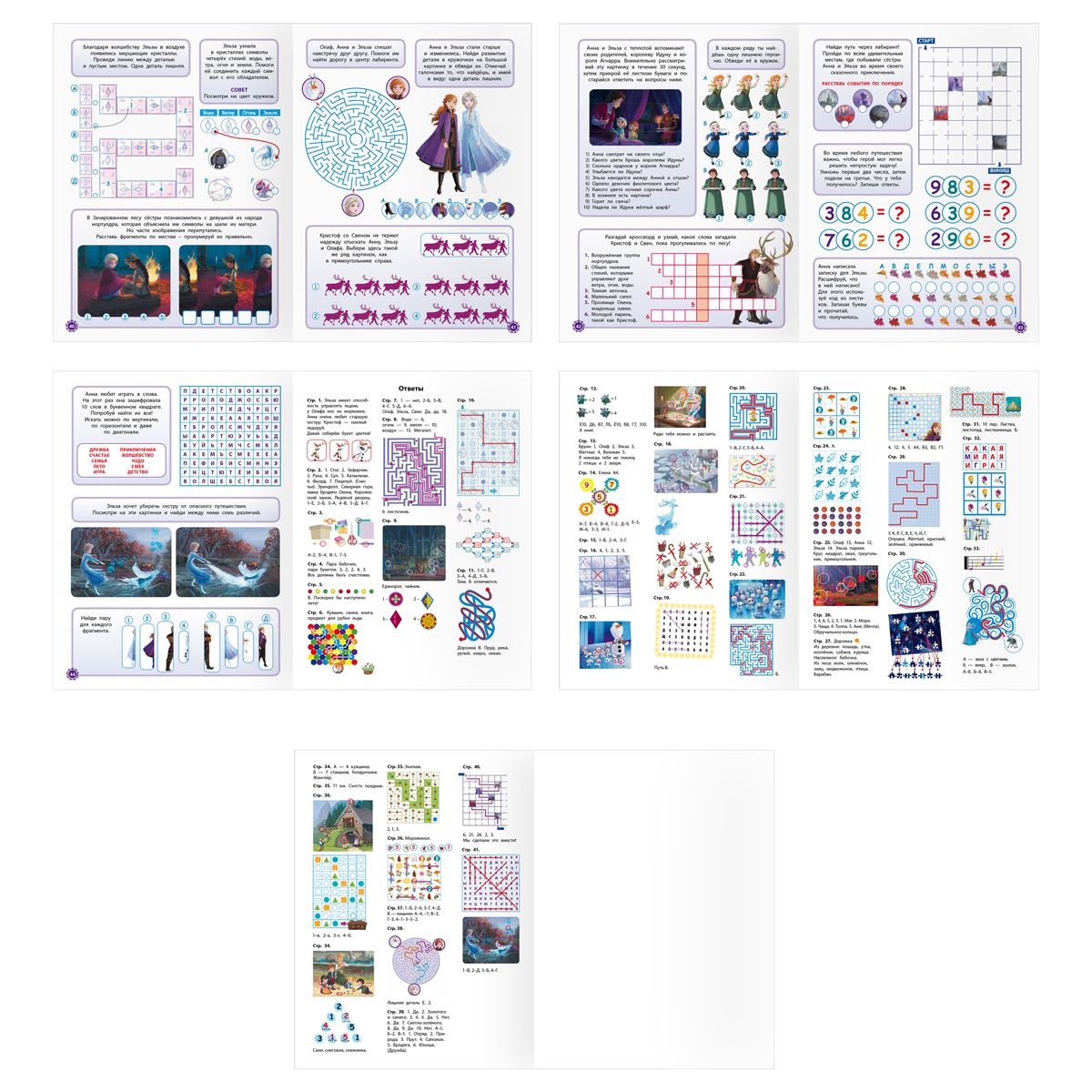 Внутри находятся задания с любимыми персонажами: лабиринты, чайнворды, кроссворды, ребусы, шарады, задания на счёт, судоку. Помимо этого, ребёнку предстоит найти отличия, лишние и спрятанные элементы, продолжить ряд, расшифровать фразу и не только.