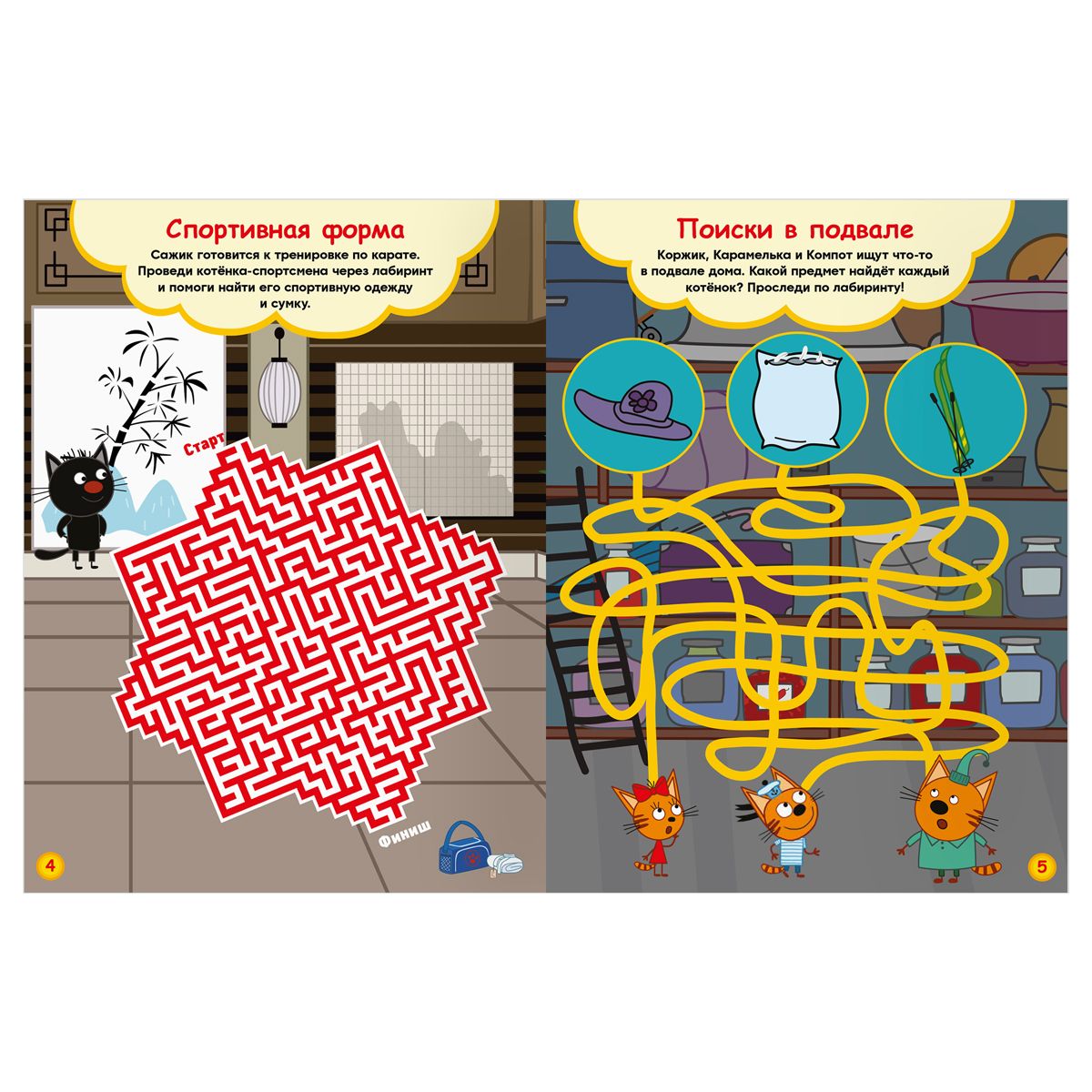 Книжка-задание, А4 ТРИ СОВЫ "Лабиринты. Три кота. Приключения продолжаются", 16стр.