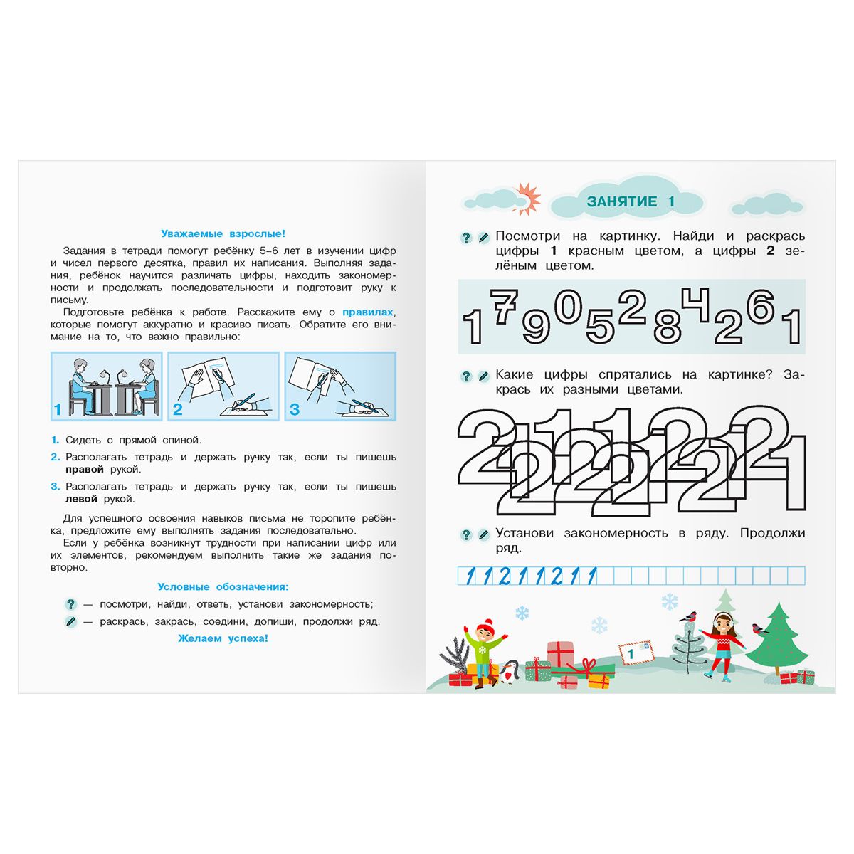 Прописи для дошкольников, А5 ТРИ СОВЫ "5-6 лет. Умные задания. Первые цифры", 8стр.