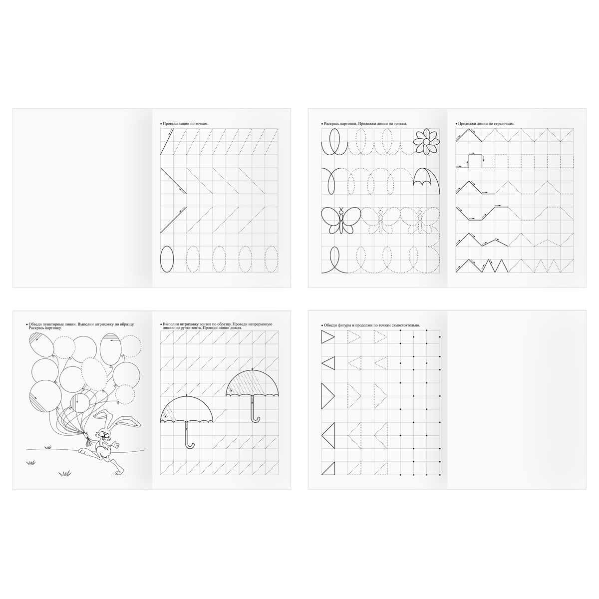 В серии «Отличные прописи. 4+ лет» представлены два вида: «Обводка, штриховка, дорисовка», «Пишу по клеточкам».