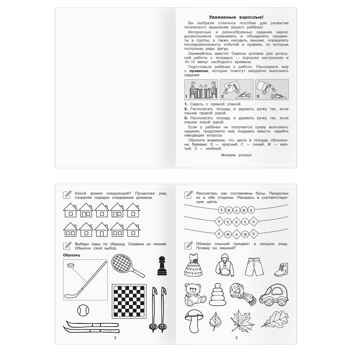 • «Развиваю логику» – пособие направлено на развитие логического мышления дошкольников. В него включены задания, направленные на развитие различных мыслительных операций. Дети научатся группировать объекты, устанавливать закономерности, понимать отрицание.