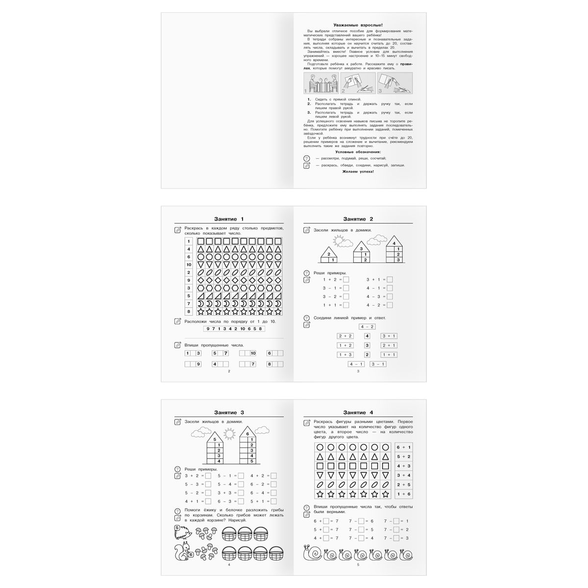 • «Счёт до 20» – пособие поможет ребенку научится считать, выполнять простейшие математические операции и решать задачи на сложение и вычитание.