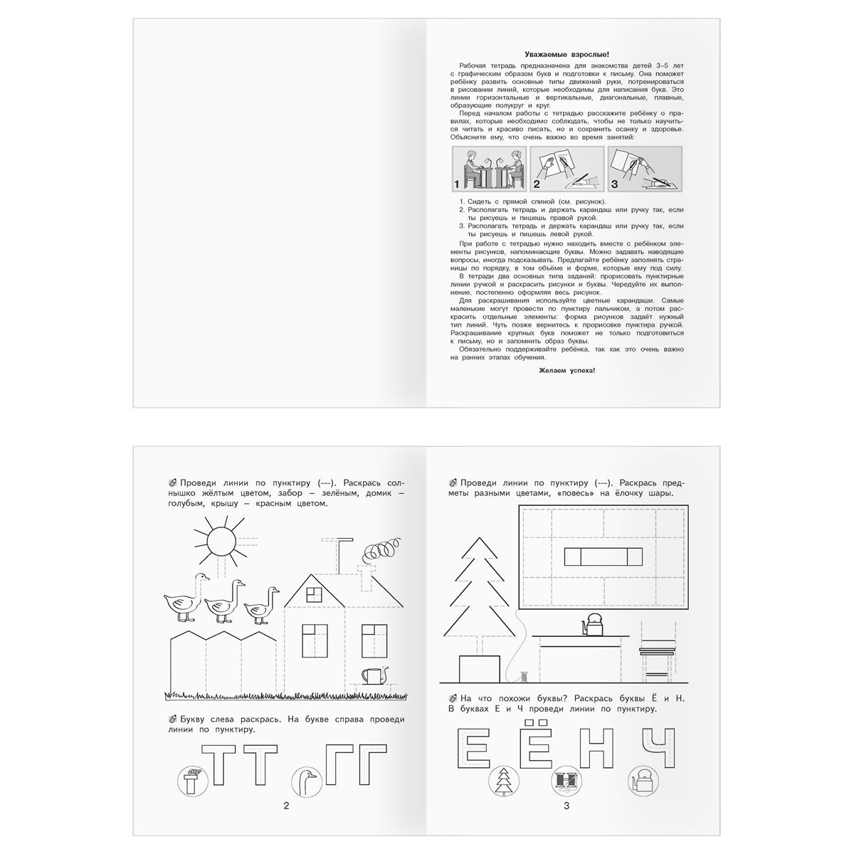 • «Учусь рисовать и писать» – пособие поможет ребенку подготовиться к овладению навыками письма, развить внимание, мелкую моторику и координацию движений. Игровые задания научат ребенка обводить элементы рисунка по пунктирным линиям, раскрашивать картинку, рисовать по клеточкам фигуру, прописывать элементы по образцу и самостоятельно.